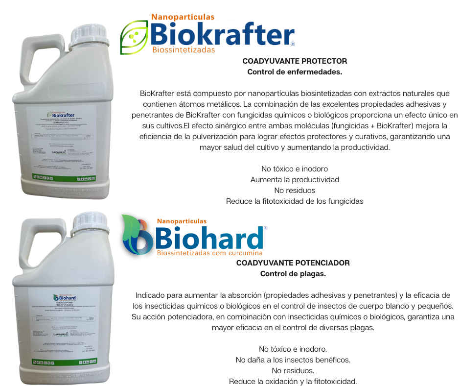 Desarrolladas por investigadores y médicos con amplia experiencia, nuestras partículas como Bioattack, Biokrafter, Biohard y BioCobre se obtienen a partir de extractos naturales, fortaleciendo los cultivos, maximizando el crecimiento, fortificando los cultivos y brindando nutrición sustentable al suelo. Nuestra tecnología patentada permite la síntesis ecológica a gran escala, lo que garantiza calidad y eficiencia a costos asequibles. El objetivo de nuestros adyuvantes Peptnano es aumentar la eficacia de productos químicos y/o biológicos.